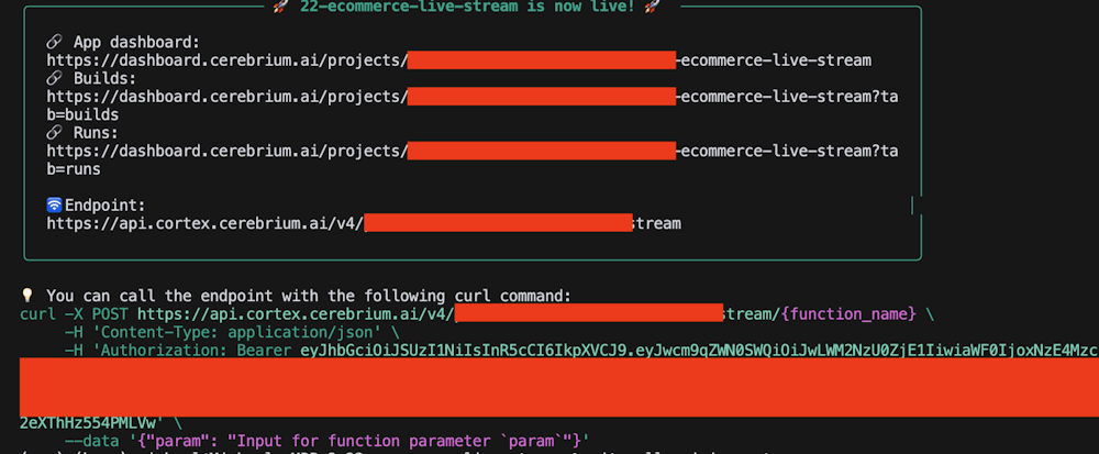 Next, we need to start receiving the frames from our live stream - this will allow us to run object detection on each frame to search our product database for a match. Daily previously wrote a blog of what it is like to perform actions on a live stream using Cerebrium. It contains a lot of the in-depth explanations about the setup, how it works and how to go about the implementation.
